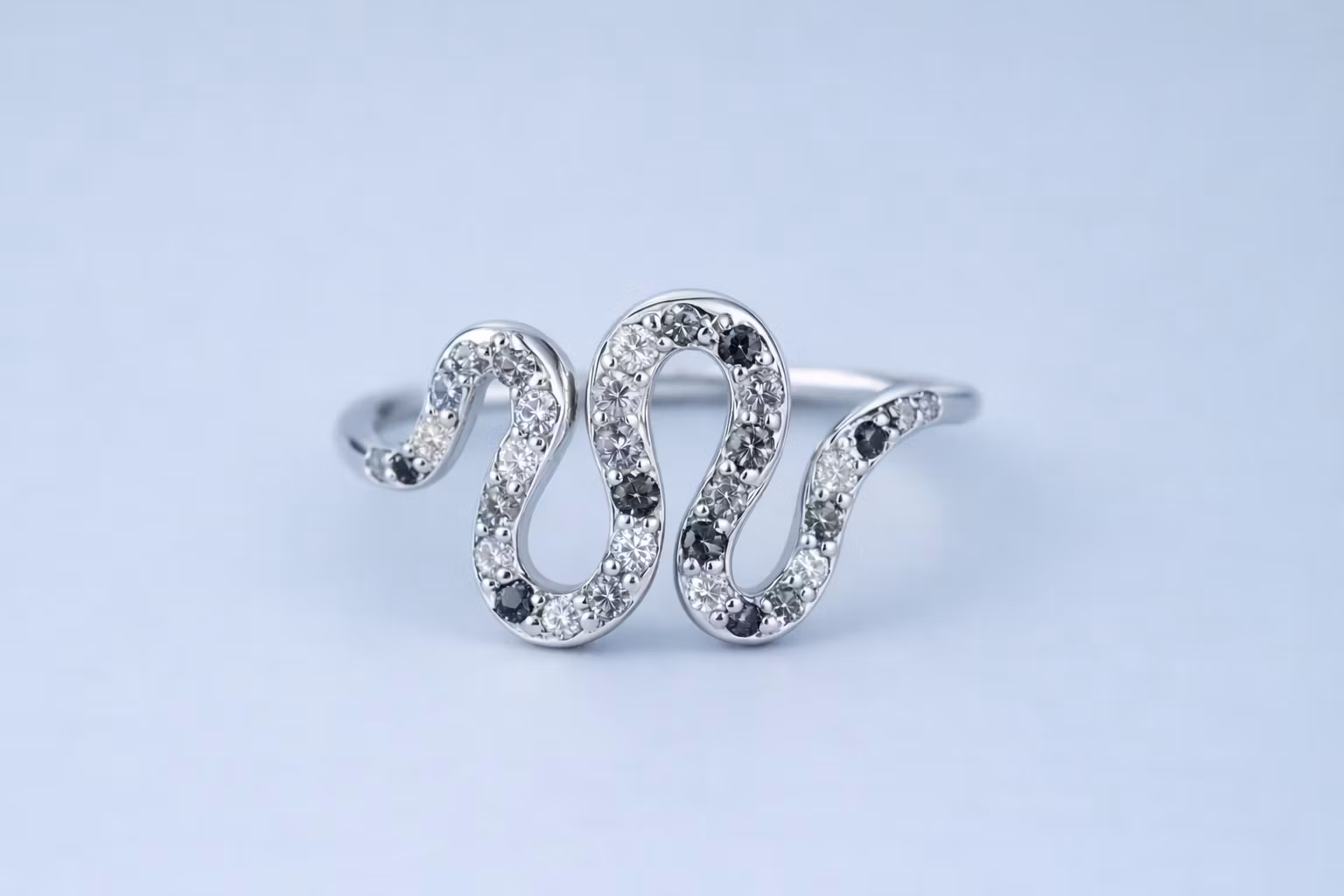 Diamanterna är i färgerna, "färglös" vit, ljus grå, mörk grå